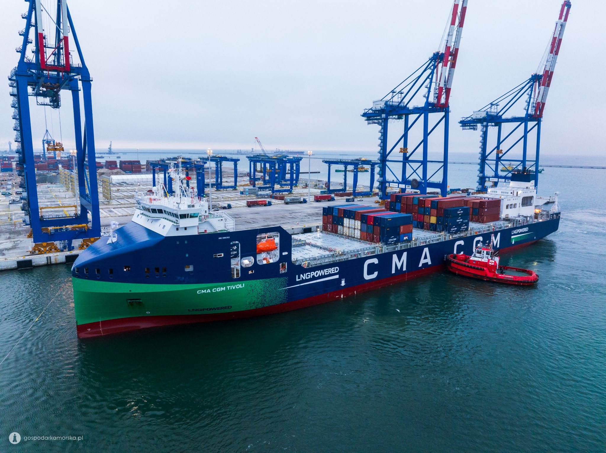 Pływający pod francuską banderą kontenerowiec Eco Ponente pojawił się z krótką wizytą w terminalu GCT w Porcie Gdynia. To kolejny statek zasilany metanolem, jaki pojawił się w Gdyni.